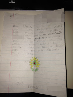 This makes 5 letters/cards from my sponsored children this month, and it's only half over! It's nice that the mail is finally rolling in!